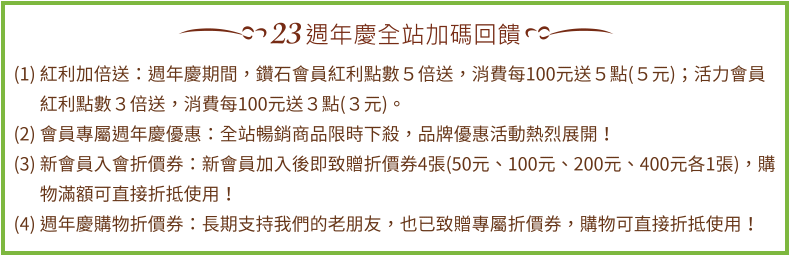 購買此區商品,任選3件商品,優惠價 89折 。 貼心提醒:任選活動優惠,系統優先折扣高單價品,替您省更多! |